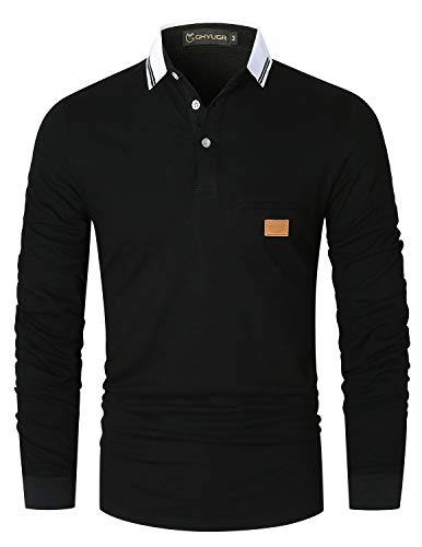 GHYUGR Polo da Uomo Manica Lunga Basic Casual Maglietta Contrast Semplice Golf Tennis Sportivo T-Shirt