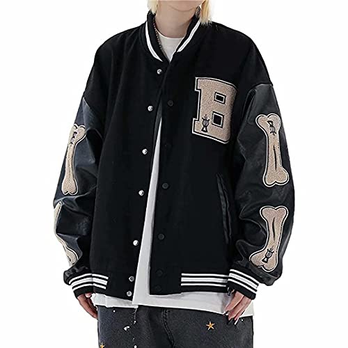 ✔ Materiale: questo giubbotto bomber a maniche lunghe è realizzato in poliestere e pelle sintetica. Morbido, caldo, comodo da indossare, non dannoso per la pelle. Giacche da baseball oversize.