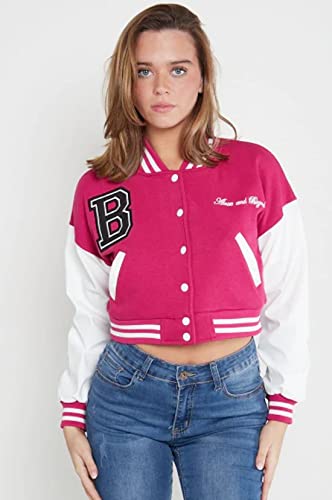 Giacca da baseball corta Varsity manica lunga abbottonata cappotto stampa lettera monopetto top bomber Streetwear, Fucsia, 38