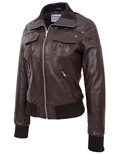 Giacca bomber da donna in vera pelle Slim Fit Blouson Motto Marrone 40