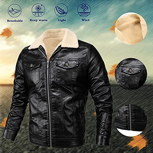 Riou Giacca in Pile Uomo con Cappuccio Giubbotto di Pelle Uomo Pelliccia Giubbotti Bomber Invernale Vintage Giacca Biker Giacca Biker Traspiranti Parka