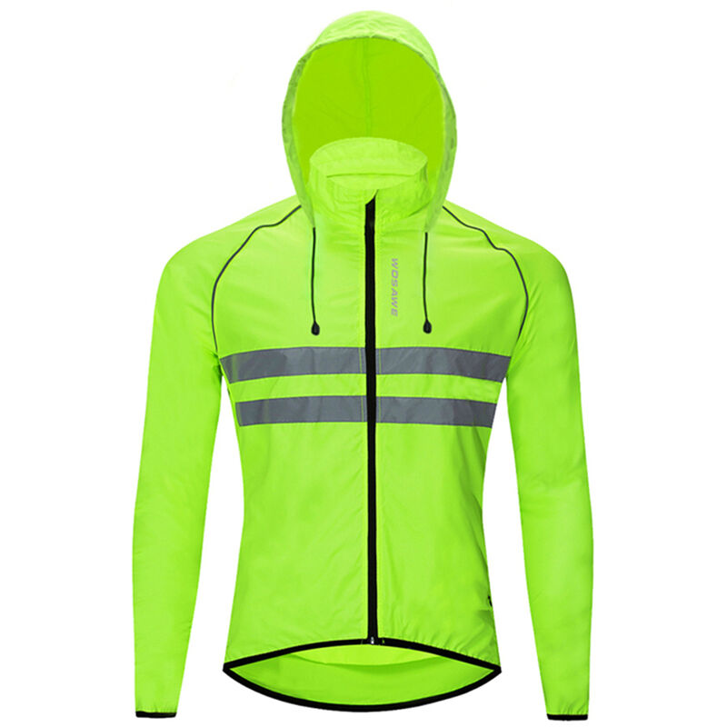 Questa giacca da ciclismo e antivento e leggera, per farti sentire a tuo agio quando vai in bicicletta. e dotato di strisce riflettenti altamente visibili per garantire la massima sicurezza durante la notte. Caratteristiche: Tessuto leggero in poliestere idrorepellente. Strisce riflettenti larghe 1,6 pollici per alta visibilita e sicurezza di notte. Tasche laterali con cerniera e tasche posteriori per riporre gli oggetti in modo sicuro. Il cappuccio puo essere riposto nel colletto quando non utilizzato, molto comodo. L'orlo elastico impedisce alla giacca di scivolare mentre ti pieghi per guidare. Adatto per ciclismo, corsa, pesca e altri sport all'aria aperta. specifiche tecniche: Materiale: poliestere Colore: nero / verde (opzionale) Taglia (US): M / L / XL / XXL / XXXL (opzionale) Elenco dei pacchetti: 1 * Giacca da ciclismo