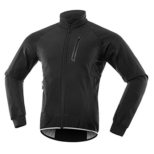 Giacca Ciclismo Uomo Invernale, Multi Tasche Giacca Bicicletta in Pile Termico con Le Strisce Riflettenti, Impermeabile Traspirante Ultraleggera Giubbotto Bici Cappotto(Color:Nero,Size:XXL)