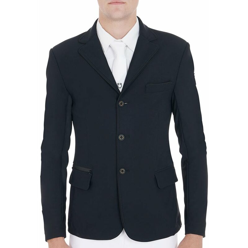 Giacca da concorso con tasca laterale e zip per uomo Marca: Equestro Colore: nero, grigio, blu navy Taglie: XS, S, M, L, XL, XXL Giacca uomo slim fit da concorso con tasca laterale con zip. Il tessuto tecnico traspirante garantisce una vestibilità perfetta. CARATTERISTICHE TECNICHE Traspirante: aiuta a regolare la temperatura corporea. Leggera: dona comfort e una maggiore mobilità. Foderato internamente. Bottoni con grafica Scritta Equestro interna. Chiusura frontale a 3 bottoni. Polsini con chiusura a 3 bottoni. Tasche laterali a soffietto. Chiusura con zip termosaldata su tasca destra. Grafica con logo Equestro in rilievo sulla spalla sinistra Grafica con Scritta Equestro e inserto a contrasto sulla parte posteriore interna del colletto. Giacca uomo da concorso con zip di chiusura nella tasca destra. Ideata con tessuto tecnico traspirante e ultra leggero di ottima qualità, garantendo così una vestibilità perfetta, il massimo comfort e la massima libertà nei movimenti . Il capo si