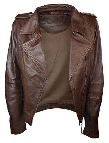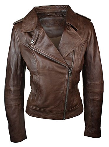 Giacca Corta da Donna e Ragazza Chiodo in Vera Pelle Stile Biker Slim Fit marrone m