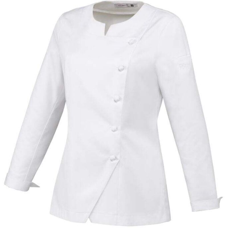 Caratteristiche: Tondo tondo + spacco Giacca aderente Bavaglino asimmetrico Bottoni a sfera in tessuto Piccolo polsino sul fondo manica Tasca portapenne sulla manica Spacchi laterali Maniche lunghe Materiale: 100% cotone - 185 gsm
