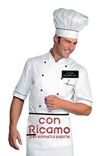 Giacca Cuoco Mezza Manica Ricamata Isacco con Nome Personalizzabile Online Modello Alicante Bianca Profili Neri Isacco (XXL)