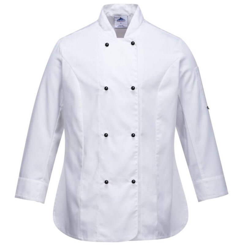 Caratteristiche: Tessuto twill resistente per un'eccellente solidità del colore. Soffietto sotto l'ascella in tessuto MeshAir traspirante da 110 g per aumentare il flusso d'aria. Quattro file di bottoni automatici intercambiabili. Materiale: Tessuto esterno: Kingsmill 190 g (65% poliestere - 35% cotone) Appositamente progettata per le donne, questa giacca unisce comfort e funzionalità. La nostra esclusiva collezione Chefswear offre versatilità e piena funzionalità per tutti i professionisti della ristorazione. Cucina pratico, elegante e resistente. Gli indumenti sono progettati per mantenere fresco chi li indossa in ambienti caldi.