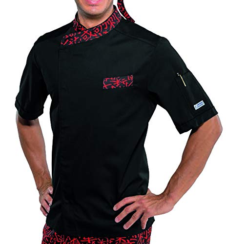 Giacca Cuoco Nome Ricamato Personalizzabile Online Modello Durango Nero-Rosso Sushi Isacco Ricamo Gratis