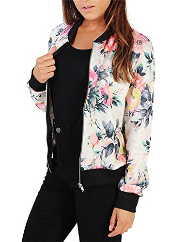 Giacca Donna Eleganti Autunno Blazer Manica Lunga Stampato Floreale Bomber Giubbotto di Baseball Cappotto Corto Trench Cerniera Taglie Forti Bolero Top Giubbino Moda Unique