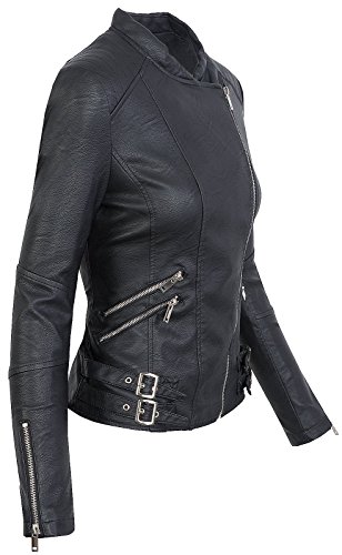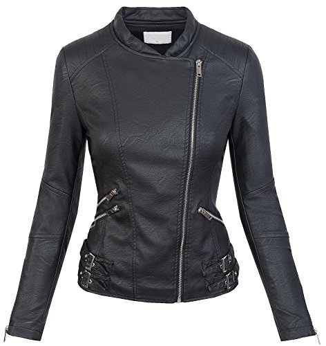 Giacca da donna in similpelle, stile biker, per le mezze stagioni, S-XL