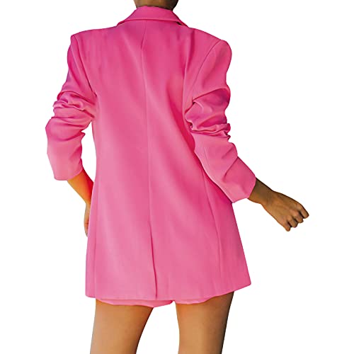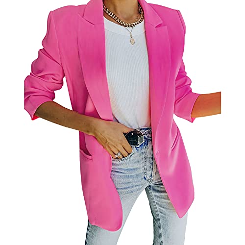 Giacca elegante da donna, tinta unita, per autunno, casual, con bottoni, scollo a V, a maniche lunghe, con tasche, slim fit, vintage, a vita alta, Rosa, S