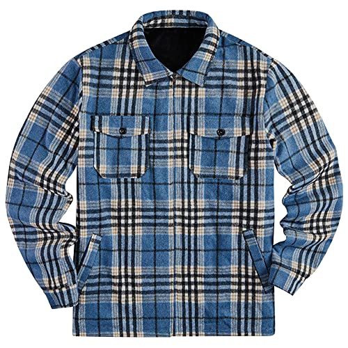 Giacca in flanella da uomo a quadri, camicia termica a quadri, con chiusura lampo, in micro pile, foderata invernale, B-blu, L