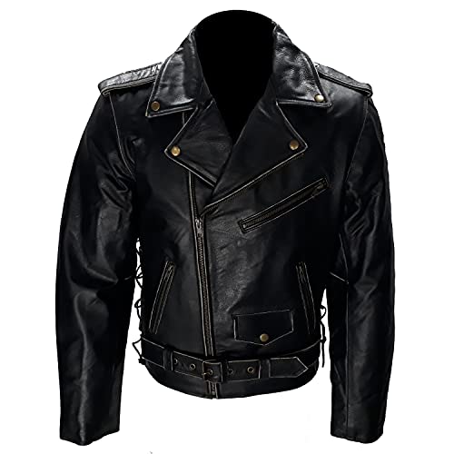 Giacca giubbotto chiodo stile da moto vintage per custom o cafè race ricamato (XL)