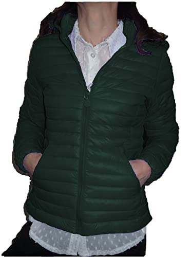 Giacca 100 grammi Leggera Foderata Avvitata Ecologica Piumino Trapuntino Cappuccio Mezza Stagione Donna Ragazza Moda (L 44 IT Donna, Verde scuro)