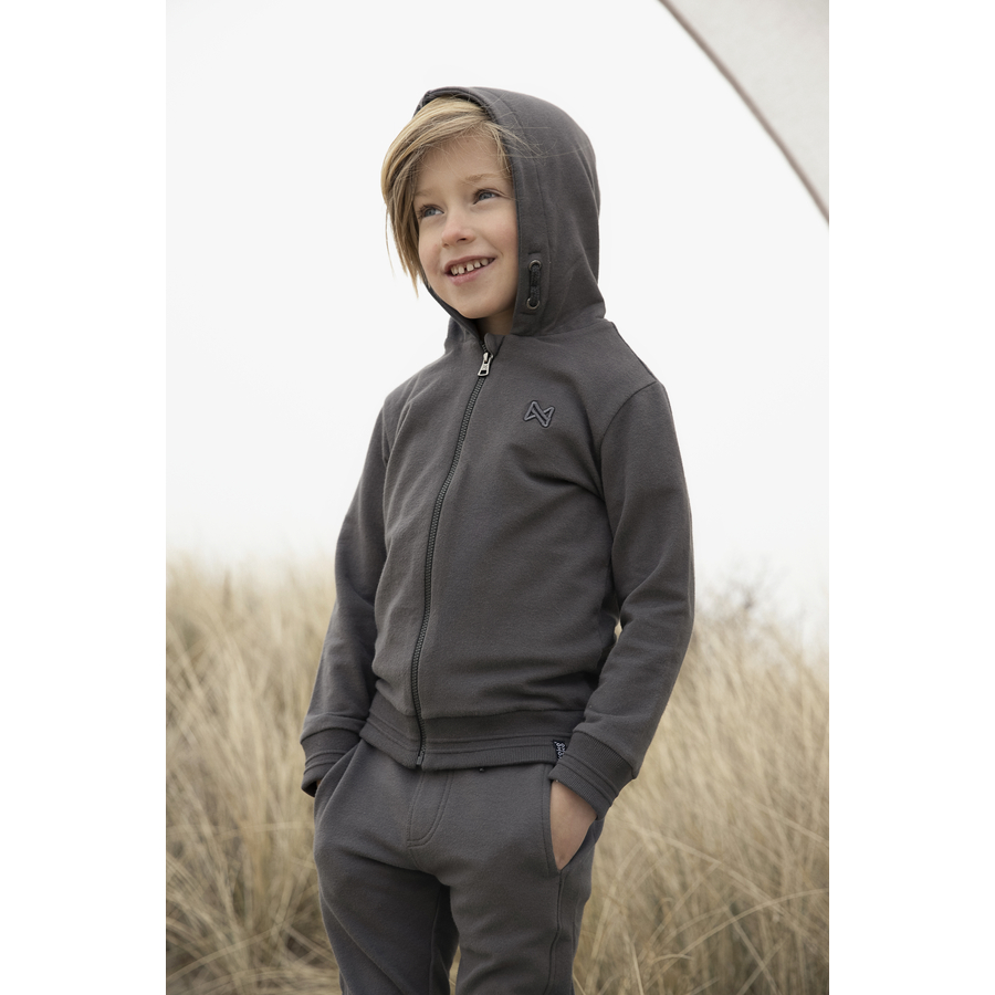Dettagli del prodotto: Giacca felpata con cappuccio Zip frontale Polsini a coste morbide Colore: grigio scuro Materiale e cura: Materiale: 95% cotone biologico, 5% elastan. Lavabile a 30°C Non asciugare in asciugatrice Non candeggiare