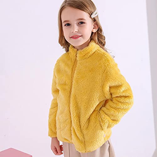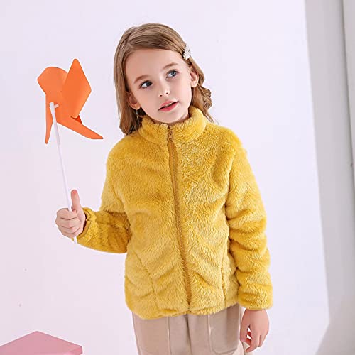 YTZL Giacca invernale in pile per bambini e ragazzi, in caldo pile, con cappuccio e chiusura lampo, giallo., 5 anni