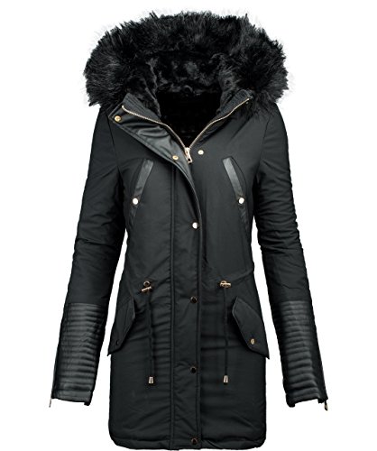 Viene offerto una giacca invernale da donna alla moda. Grande in finta pelliccia in combinazione con applicazioni di ecopelle nera rendono questa giacca davvero degno di nota, inoltre con calda e kuschligem pelliccia Teddy foderato