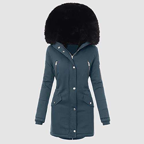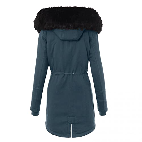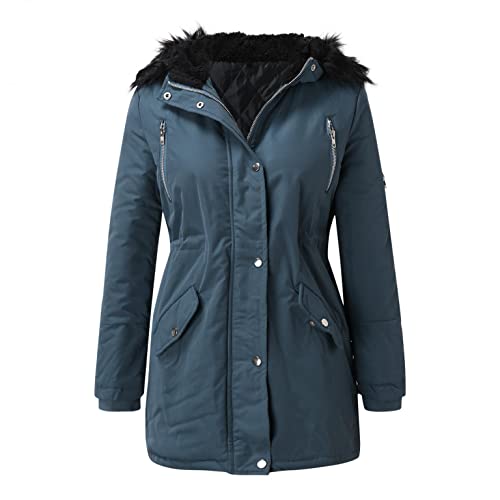 Giacca invernale da donna, taglia grande, con cappuccio, parka da donna, parka, blu navy, S