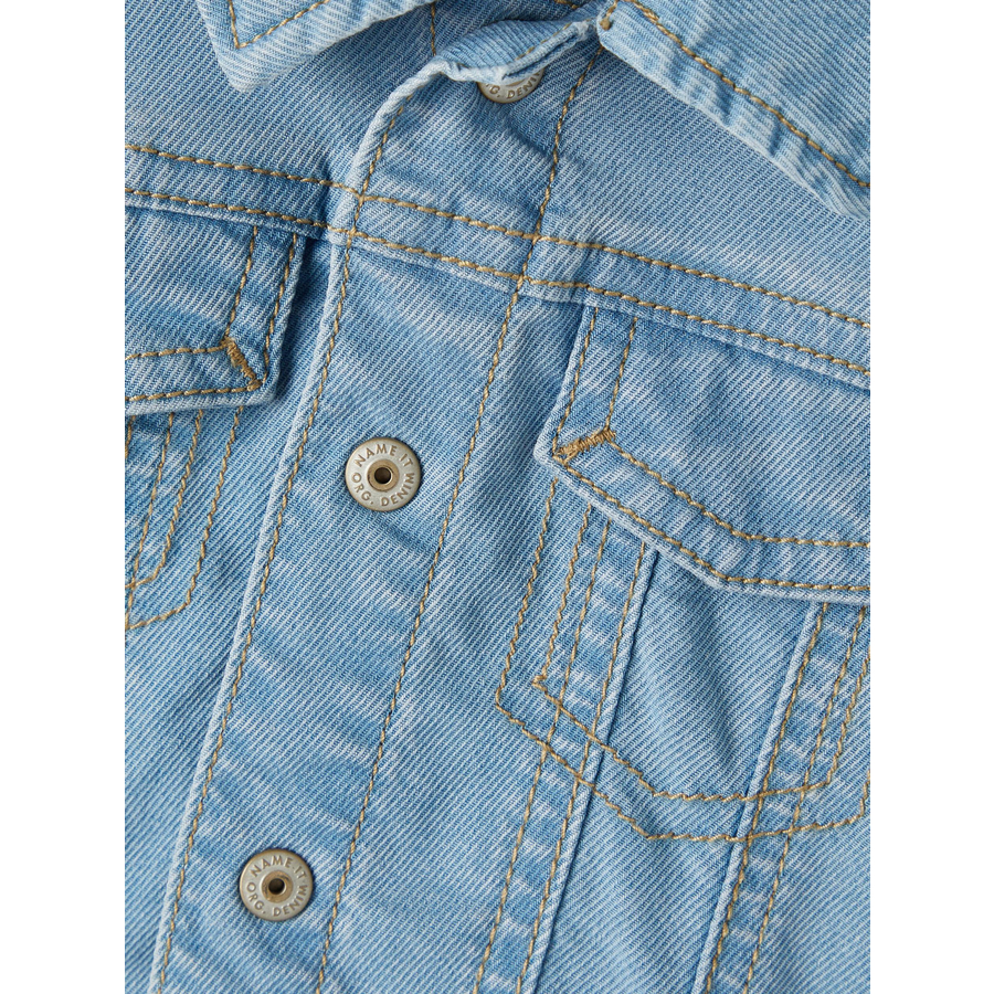 Dettagli prodotto: Giacca di jeans per bambini Chiusura con bottoni a pressione Polsini elasticizzati Tasche sul petto Materiale e cura: Materiale: 71% TENCEL™ lyocell, 20% poliestere riciclato, 8% viscosa, 1% elastan. Lavabile fino a 40 °C Non asciugare in asciugatrice Non candeggiare Non lavare a secco Stirare a caldo moderatamente