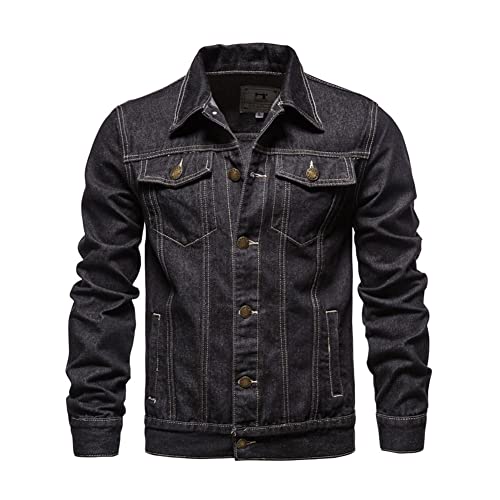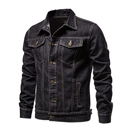 Giacca a Jeans da Uomo Vintage Classica Giubbotto di Jeans Blu Scuro Casual Denim Giacca Giubbino Slim Fit Giubbotto da Mezza Stagione in Cotone Denim con Botonni e Tasche Nero M