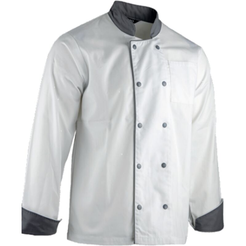 Dettagli: Colletto da ufficiale Chiusura con doppio bottone e bottoni a pressione nascosti Maniche lunghe Polsino arrotolabile 1 tasca applicata sul petto a sinistra 1 tasca sulla manica sinistra per termometro Puntini tono su tono Ricamo LMA in basso a sinistra Caratteristiche: 65% poliestere 35% cotone - 200 g/m² twill Bianco/grigioXXL