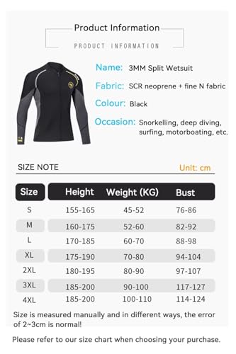 Top Muta per Uomo, 3mm Giacca Muta in Neoprene, Maniche Lunghe Muta da Sub Rash Guard Mute Umide, Mute da Immersione per Immersioni, Surf, Snorkeling e Nuoto, Uomo Nero Giacca, 3XL