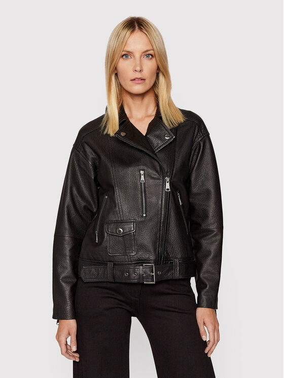Ted Baker Giacca di pelle Tiano 258513 Nero Oversize