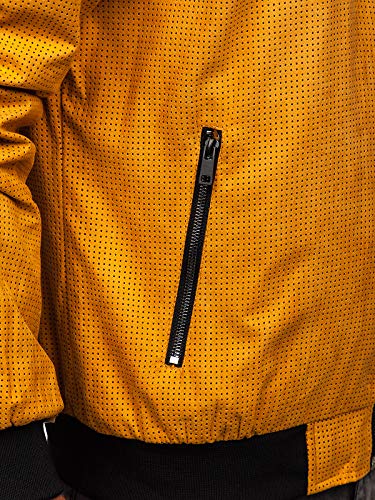 BOLF Uomo Giacca in Pelle Collo alla Coreana Ecopelle Biker Invernale Mezza Stagione Trapuntata da Aviatore Bomber Cerniera Lampo Cerniera Casual Style 6115 Cammello XL [4D4]