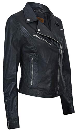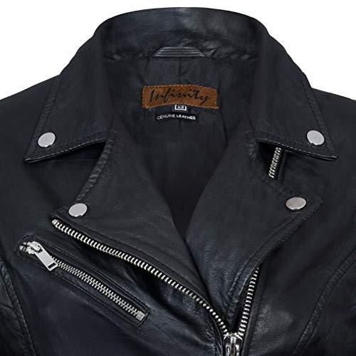 Giacca in Pelle da Donna Nero Giacca in Vera Pelle Stile Motociclo Classico XL