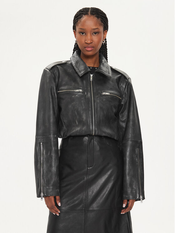 Gestuz Giacca di pelle Gemma 10908766 Nero Relaxed Fit