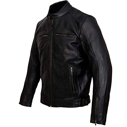 STILE PROPRIO - Giacca in pelle traforata stile personalizzato perfetta per mantenere lo stile anche in estate, stile perfetto per moto custom, chopper, bobber, cafe racer, ecc.