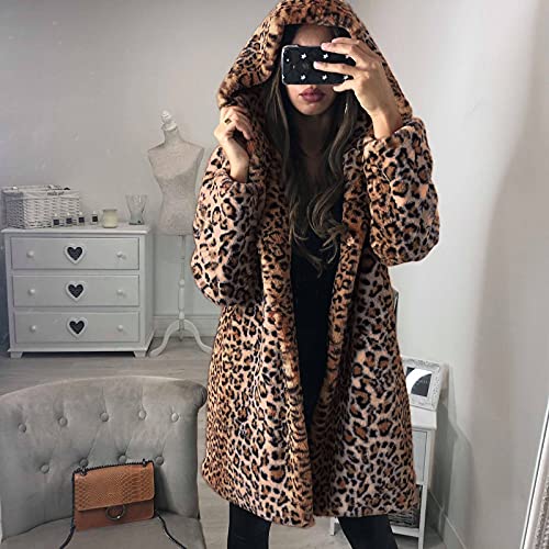 Riou Giacca Pelliccia Leopardo Cappotto da Donna: Parka Capispalla a Maniche Lunghe Caldo Elegante Mid Lungo Cappotto Peluche con Cappuccio Trench Giubbotto Inverno Taglie Forti Capispalla