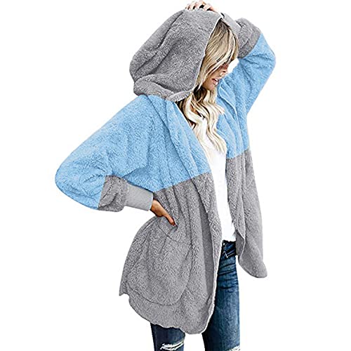 Giacca di peluche da donna con cappuccio, giacca invernale da donna, lunga e calda, da donna, Y2k, giunture fuzzy, in pile, con tasche, giacca con cappuccio, giacca invernale da montagna, Blu, XXXXL