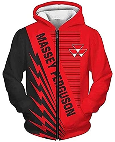 Giacca Pullover da Uomo, Felpa Leggera Massey-Ferguson, Felpa con Stampa Digitale 3D Felpa in Pile con Cappuccio Sportivo Casual,Rosso,M