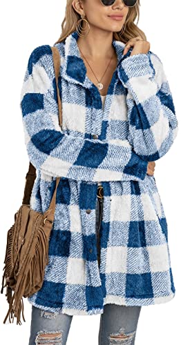 Giacca a quadri da donna Oversize Shacket Donna Manica Lunga In Pile Aperto Anteriore Baggy Cappotto Cardigan Con Tasche Casual Capispalla Camicia E-Girl Y2k Moda Top Autunno, Blu e grigio, S