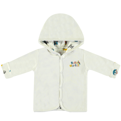 Pink or blue - il marchio per tutti i primi abiti del tuo bambino La prima volta con un neonato è meravigliosa, emozionante ed estenuante allo stesso tempo. Ciò di cui il tuo bambino ha bisogno ora è amore in abbondanza, sicurezza e attenzione.... per tutto il resto c'è ora l'abbigliamento amorevolmente progettato del marchio pink or blue . Lo sviluppo di un bambino, specialmente nei primi 24 mesi, è eccitante, rapido e sorprendente. I nostri esperti hanno sviluppato per voi molti bei prodotti che rendono la vita con il vostro piccolo tesoro più facile e piacevole. In breve - l'attrezzatura completa e spensierata per i più piccoli. Oltre a molti dettagli pratici ed esclusivi Design s, la qualità dei prodotti è soprattutto in primo piano. Le qualità certificate Ökotex in cotone morbido e coccoloso sono utilizzate per la pelle delicata del bambino. I materiali dimensionalmente stabili resistono a molti lavaggi e rimangono delicati sulla pelle del bambino. Con i primi completi rosa o blu, puoi fare in modo che il tuo bambino si senta completamente a suo agio e, naturalmente, a prezzi equi. La moda di marca non deve essere costosa, guarda tu stesso nel nostro negozio online! Bella giacca reversibile in morbido cotone con bottoni a pressione per indossarla e toglierla facilmente. Dettagli del prodotto: Colore: 1° lato: bianco / 2° lato: bianco con motivo Allover Materiale: 100% cotone