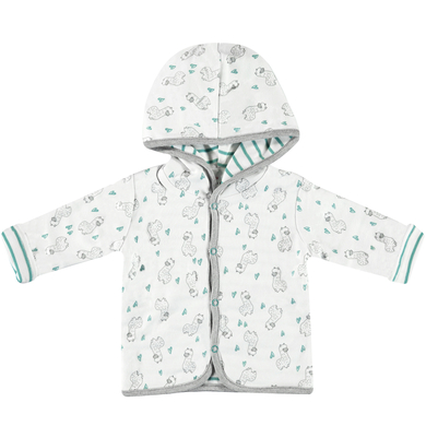 Pink or blue - il marchio intorno al primo equipaggiamento del vostro bambino La prima volta con un neonato è meravigliosa, emozionante ed estenuante allo stesso tempo. Ciò di cui il tuo bambino ha bisogno ora è amore in abbondanza, sicurezza e attenzione.... per tutto il resto, c'è ora l'abbigliamento progettato con amore dal marchio pink or blue a Baby-Markt.de. Lo sviluppo di un bambino, specialmente nei primi 24 mesi, è eccitante, rapido e sorprendente. I nostri esperti hanno sviluppato per voi molti bei prodotti che rendono la vita con il vostro piccolo tesoro più facile e piacevole. In breve - l'attrezzatura completa e spensierata per i più piccoli. Oltre a molti dettagli pratici ed esclusivi Design s, la qualità dei prodotti è soprattutto in primo piano. Le qualità certificate Ökotex in cotone morbido e coccoloso sono utilizzate per la pelle delicata del bambino. I materiali dimensionalmente stabili resistono a molti lavaggi e rimangono delicati sulla pelle del bambino. Con l'allestimento iniziale di pink or blue vi assicurate che il vostro bambino si senta completamente a suo agio e naturalmente a prezzi equi. La moda di marca non deve essere costosa, guarda tu stesso nel nostro negozio online! Bella giacca reversibile in bianco e verde. Simpatiche applicazioni di lama su un lato e strisce verticali verdi sull'altro. Il cotone morbido assicura una sensazione di benessere a tutto tondo e l'abbottonatura lo rende facile da indossare e da togliere. Ideale per il tuo piccolo. <
