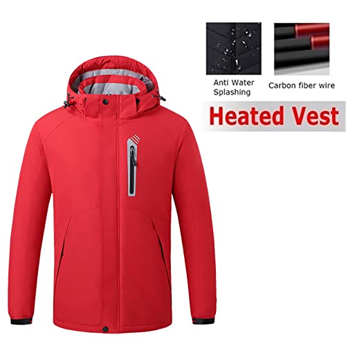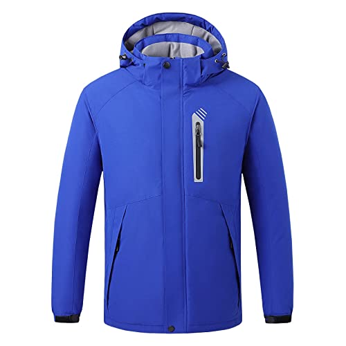 Giacca riscaldata da uomo con cappuccio rimovibile, antivento, in softshell, calda e invernale, con cappuccio, Blu, XXXL