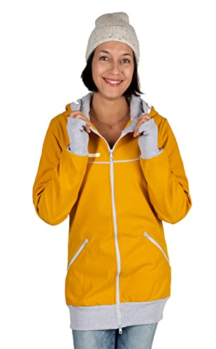 Senza bambino, Jacky è indossabile a lungo come normale giacca per attività all'aria aperta. Con cappuccio extra large, 2 tasche foderate con zip, polsini rigidi con fori per pollice e orlo decorativo.