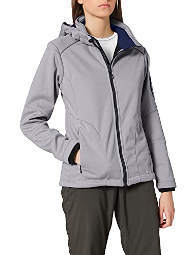 CMP - Giacca in softshell melange da donna con cappuccio removibile, Argento Mel.-Cobalto, 48