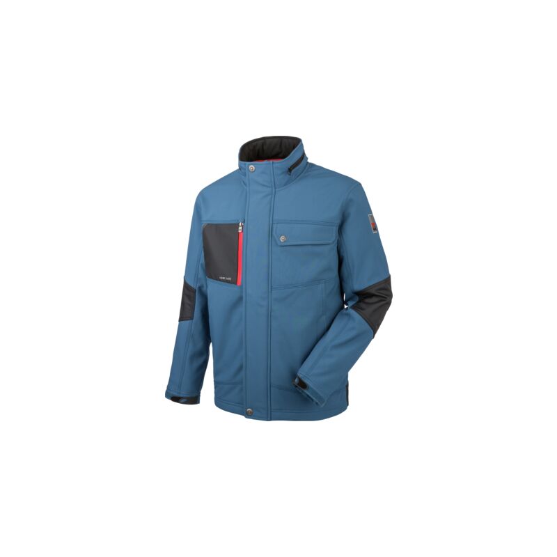 Giacca blu impermeabile con tessuto in Softshell Giacca blu antivento, impermeabile all'acqua in tessuto in softshell.. Punti di forza: 4 tasche esterne e 1 interna aerazione ascellare, cappuccio ripiegabile nel colletto impermeabilità 8.000 mm colonna d'acqua, traspirabilità 3.000 MVP spalle e gomiti rinforzati, triple cuciture tasca portacellulare in tessuto e-care Composizione: 100% poliestere - 295 g/m²