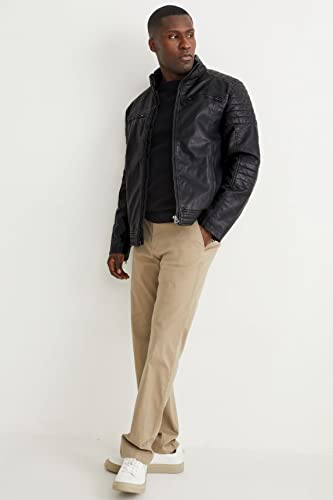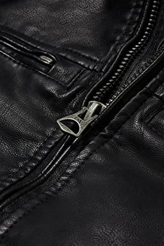 Giacca stile motociclista leggermente imbottita in similpelle trapuntata. 4 tasche con cerniera, 2 sul petto e 2 sui lati. Cinturini regolabili in fondo e fodera interna con scomparto con cerniera.
