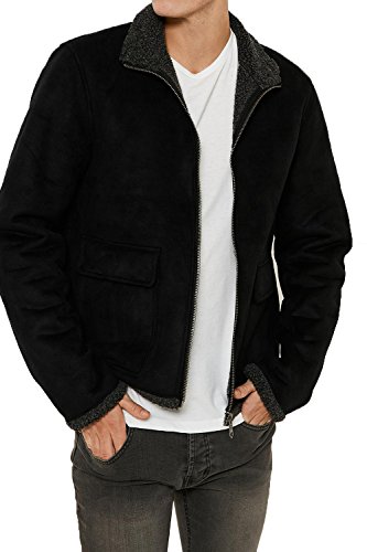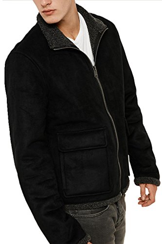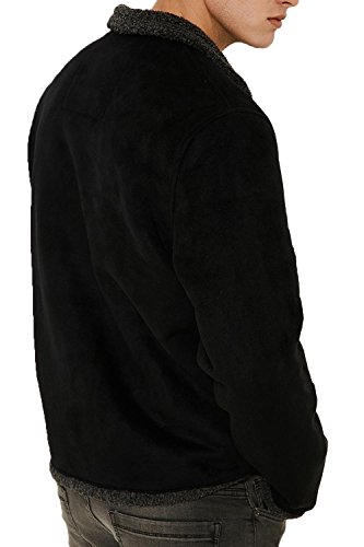 Giacca Da Uomo Threadbare Finta Pelle Di Pecora Cappotto Borg Sherpa Fodera In Pile Invernale Casual - Nero - DMV076PKA, X-Large