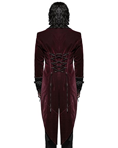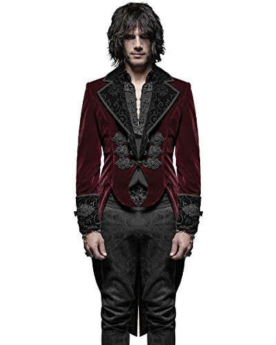 Punk Rave, giacca frac da uomo in velluto rosso, stile gotico, steampunk Rosso Red