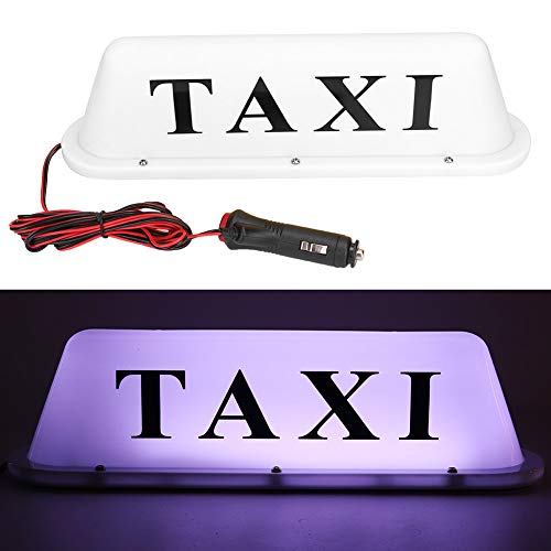 Luce per taxi, CC 12V gialla, custodia bianca LED magnetico per taxi sul tetto Lampada a luce super brillante per auto, lampada per taxi con accendisigari(Custodia bianca (articolo n .: D010B))