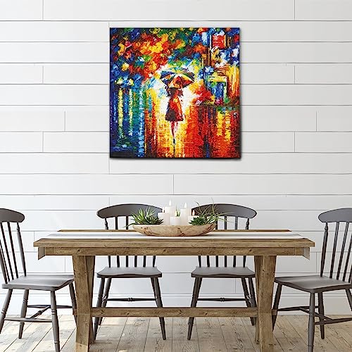 Giallo Bus 971 Quadro Stampa Su Tela Canvas, Lenoid Afremov, Pioggia, 70 x 70 cm