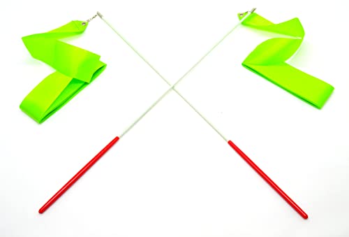 2 x Giallo e verde, Fluorescente, Nastri di Baile Serpentine di Arco Iris (4 metri) Nastro di Gimnasia Ritmica Barre piroettanti in Palos 2 pz Palos de Gimnasia