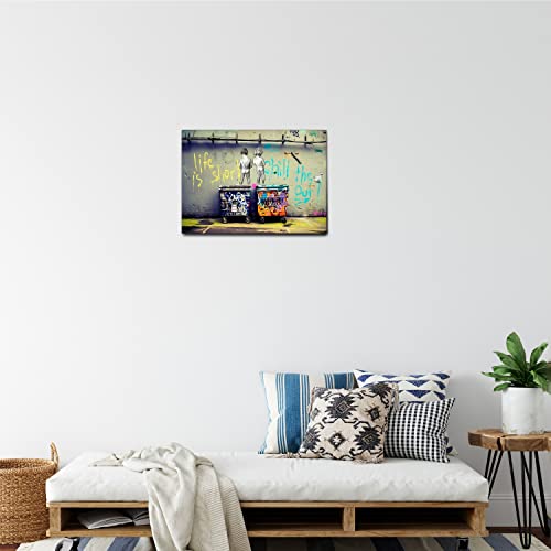 Giallobus - Quadro - Banksy - Bambini pipì - Tela Canvas Telaio Standard - 50x35 - Pronto da appendere - Quadri moderni per la casa