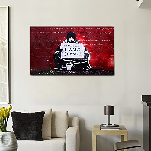 Giallobus - Quadro - Banksy - I Want Change - Tela Canvas - 140x80 - Pronto da Appendere - Quadri Moderni per la casa